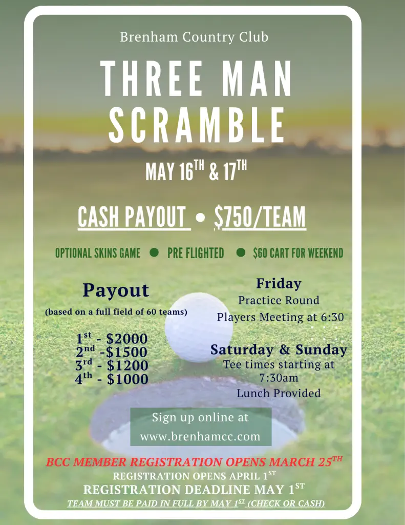 Brenham Country Club is open Tuesday-Sunday. Our hours are seasonal. Please call the Club for current operating hours (979-836-1733). The driving range opens 30 minutes before the first tee time. Please be lined up at #1 Tee 10 mins prior to your assigned tee time. Brenham Country Club provides multiple levels of membership to meet the needs of our Family-Oriented community.